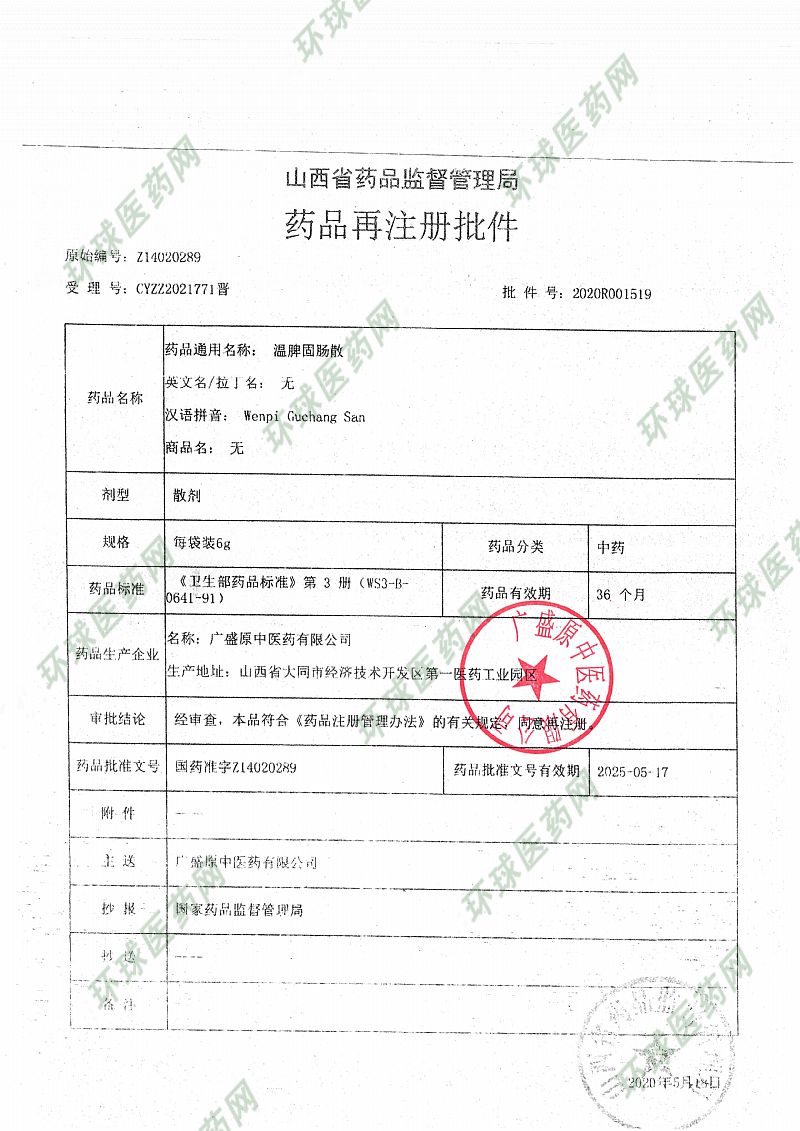 | 通用名称 | 温脾固肠散 |