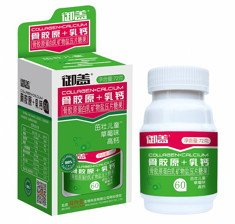 | 补充说明 | 御盖骨胶原乳钙 60片盒装,120盒/件 搭配品尝装,宣传物料 严格市场保护 针对不同人群研制不同口味 口感好,松软易嚼 签订区域市场保护协议 |