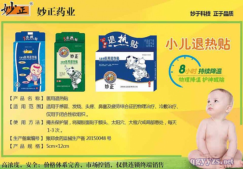 | 产品卖点 | 1、产品规格齐全包括:2贴、3贴、4贴装 2、普通退热贴和变色退热贴 3、*新工艺:带“体温计”的退热贴,38°自动变色 4、进口原料,*新工艺,持续8-12小时降温; 5、严格市场保护 |