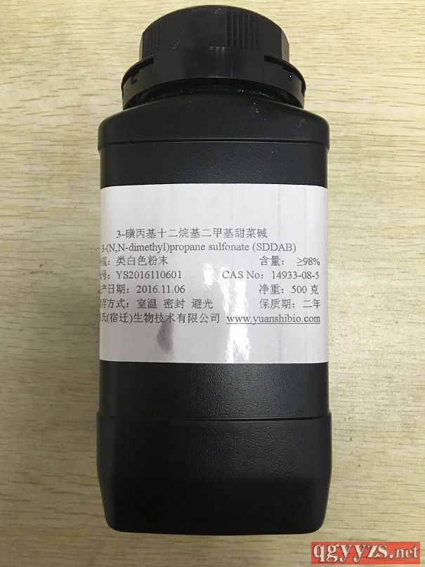 | 补充说明 | 3-磺丙基十二烷基二甲基甜菜碱 英文名: 3-Sulfopropyl dodecyl dimethyl amm0nium betaine (SDDAB) 外观:白色结晶粉末 含量:≥99* 分子式:C17H37NO3S 分子量:335.6 CAS No.:14933-08-5 熔点:244℃ 存储:-20℃冷藏 编号:DYS008 |