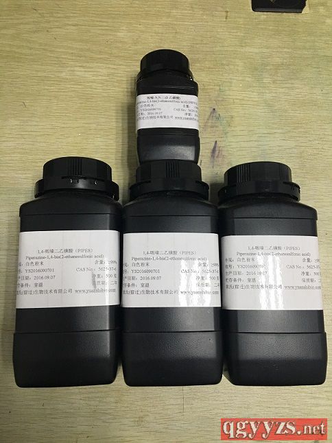 | 补充说明 | 哌嗪-1,4-二(2-乙磺酸) 英文名: Piperazine-1,4-bis(2-ethanesulf0nic acid)(PIPES) 外观:白色粉末 含量:≥99* 分子式:C8H18N2O6S2 分子量:302.4 PKA:6.8 PH使用范围:6.1-7.5 CAS No.:5625-37-6 编号:HYS014 |