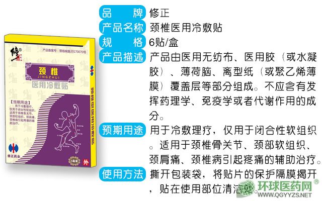 | 产品用途 | 【预期用途】用于冷敷理疗,仅用于闭合性软组织。适用于颈椎骨关节、颈部软组织、颈肩痛、颈椎病引起疼痛的辅助治疗。 |