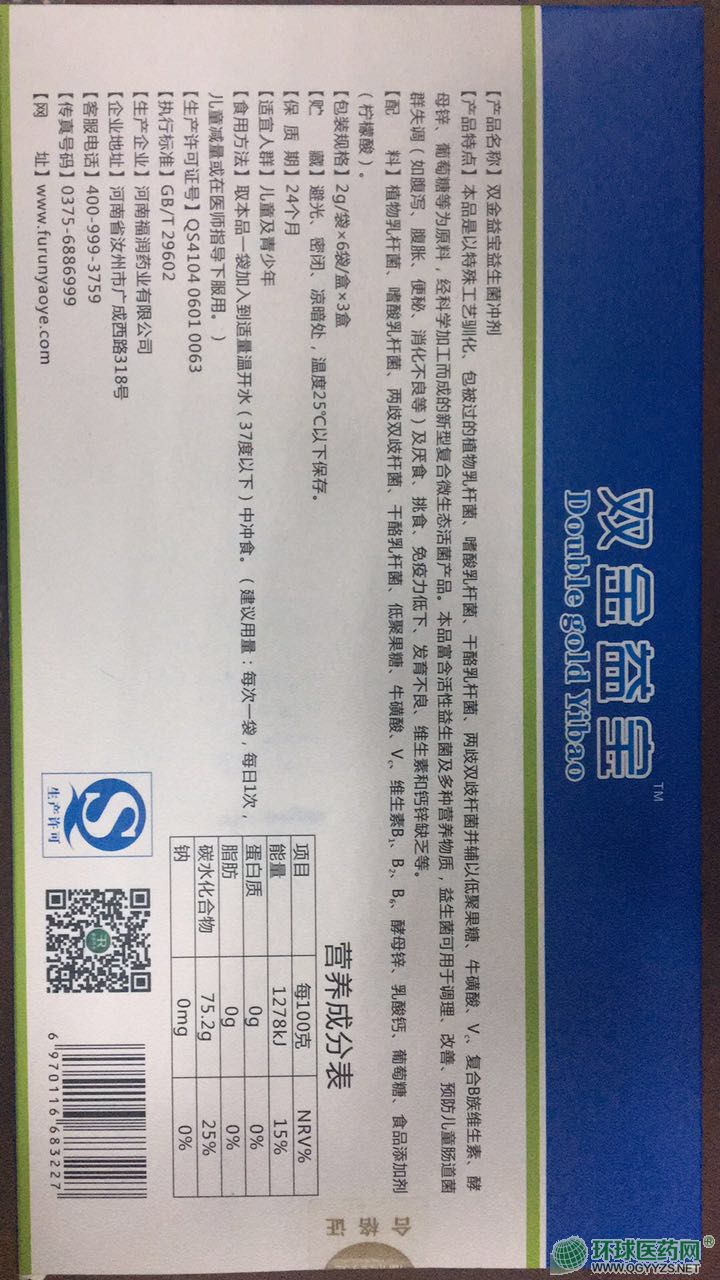 | 产品名称 | 双金益宝益生菌冲剂 |