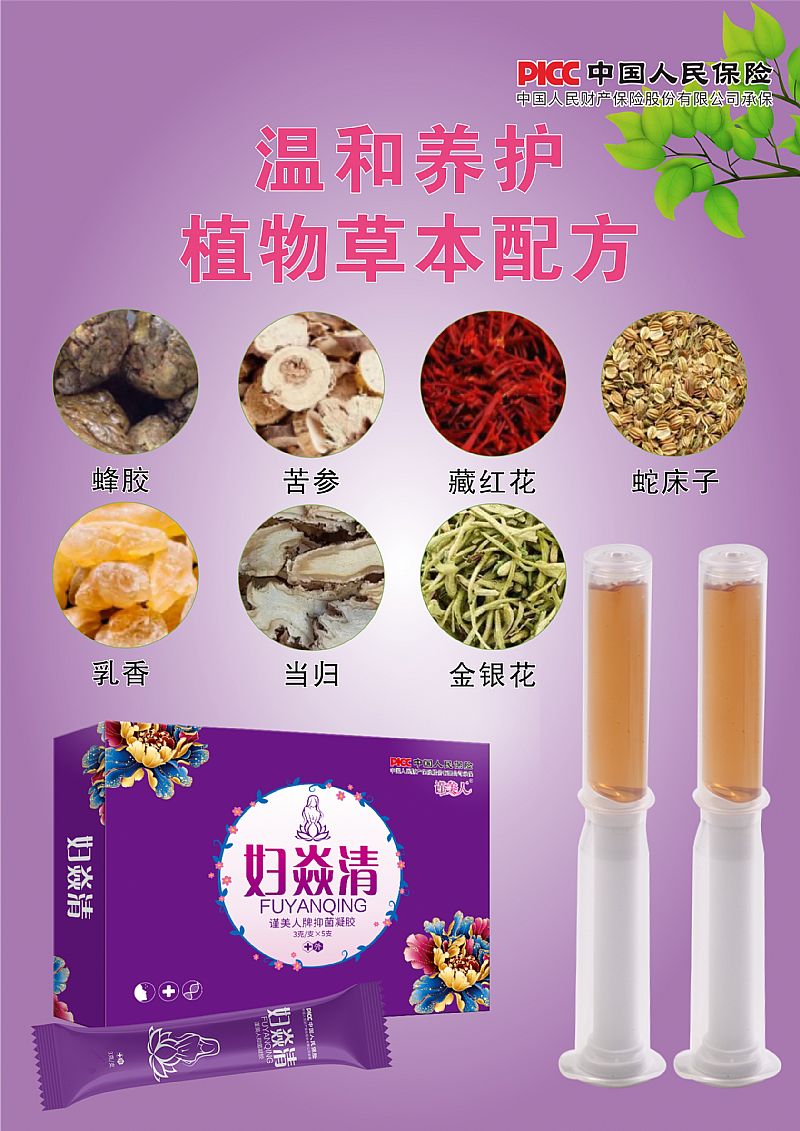 | 主要成分 | 蜂胶(Propolis)、蛇床子(Cnidiummonnieri(L.)Cuss)、苦参(RadixSophoraeFlavescentis)、乳香(Boswelliacarteri)、金银花(FlosLoniceraeJaponicae)、藏红花(Crocussativus)、当归(RadixAngelicaeSinensis)、聚六亚甲基双胍(0.15-0.18‰)。 |