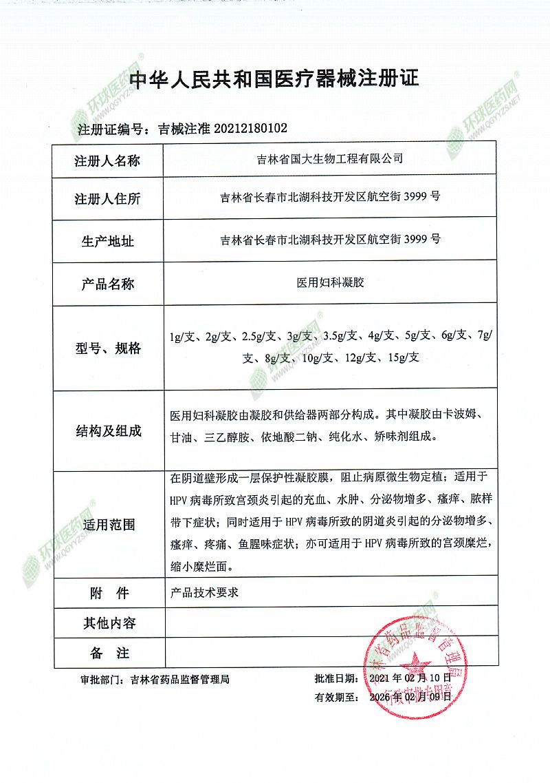 | 产品名称 | (HPV)医用妇科凝胶 |