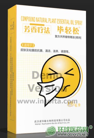 | 补充说明 | [产品名称]复方天然植物精油喷剂 COMPOUND NATURAL PLANT ESSENTIAL OIL SPRAY [主要有效成分及含量] 本品由天然薄荷油,丁香罗勒油,尤加利和其它单方精油复配,经葡萄籽油,橄榄油,小麦胚芽油,甜杏仁油,维生素AD油等基础油稀释调制而成.主要抗菌成分为丁香罗勒油(拉丁文名称:OLEUM OCIMI GRATISSIMI),含量为1.5%-3%. [性状]本品为淡黄色澄清油状液体,具有植物精油特有清凉香气. [抑制或杀灭微生物类别]本品能够快速抑制皮肤及粘膜中金黄色葡萄球菌,大肠杆菌等致病微生物的生长与繁殖. [使用范围]用于皮肤及粘膜的抗菌,清凉,滋养,调理等. [使用方法] 清理鼻腔,擤干净鼻涕,采取端坐位,头稍后仰,右手持瓶,将喷头置于左鼻孔内,喷头朝向外侧喷药;后换左侧同法喷右鼻(右手喷左鼻,左手喷右鼻,向外侧)。要注意不要朝鼻中间(鼻中隔)方向喷药,以免长期用药后导致局部粘膜出血甚至鼻中隔穿孔。喷药后,用纸巾擦净喷嘴即可。 [提示]1婴幼儿,怀孕或哺乳期慎用.不要多人使用同一喷剂,防止交叉感染.当性状发生改变或超过有效期时请勿使用.对任一组分过敏者慎用.本品为外用品,不可内服. [贮藏]常温避光储藏即可. [有效期]两年 [型号规格]本品为载银塑料喷瓶装,规格分别为10ml,15ml,20ml,30ml. [生产企业卫生许可证]鄂卫消证字(2015)第0005号 [执行标准]Q/WNHM25-2017 DB53/563-2014 [生产企业]武汉诺华敏生物科技有限公司 [生产地址]武汉经济技术开发区民营科技工业园西区D座二层 |