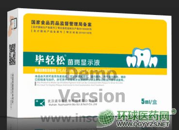 | 产品用途 | 用于显示菌斑,辅助口腔检查与治疗,亦可用于刷牙效果的评价,人群口腔流行病学调查以及口腔健康教育监测等。 |