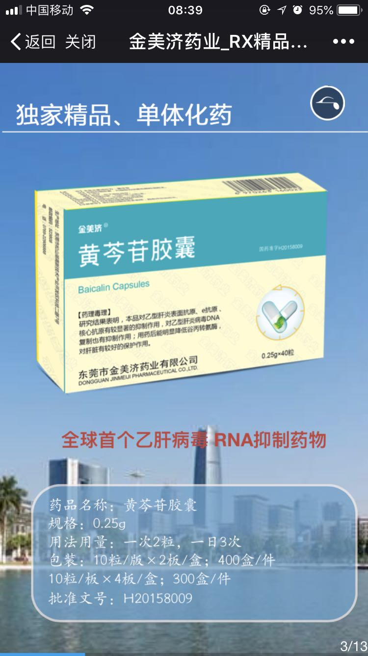 | 功能主治 | 与核苷类药物具有不同抗HBV作用机制,联合用药,产生疗效叠加,**抑制HBV复制;黄芩苷**增强NAs-耐药患者的抗病毒疗效。对乙型肝炎表面抗原e抗原、核心抗原有**的抑制作用,对乙型肝炎病毒DNA复制也有抑制作用;用药后能明显降低谷丙转氨酶,对肝脏有较好的保护作用。适用科室:内科、肝病科。 |