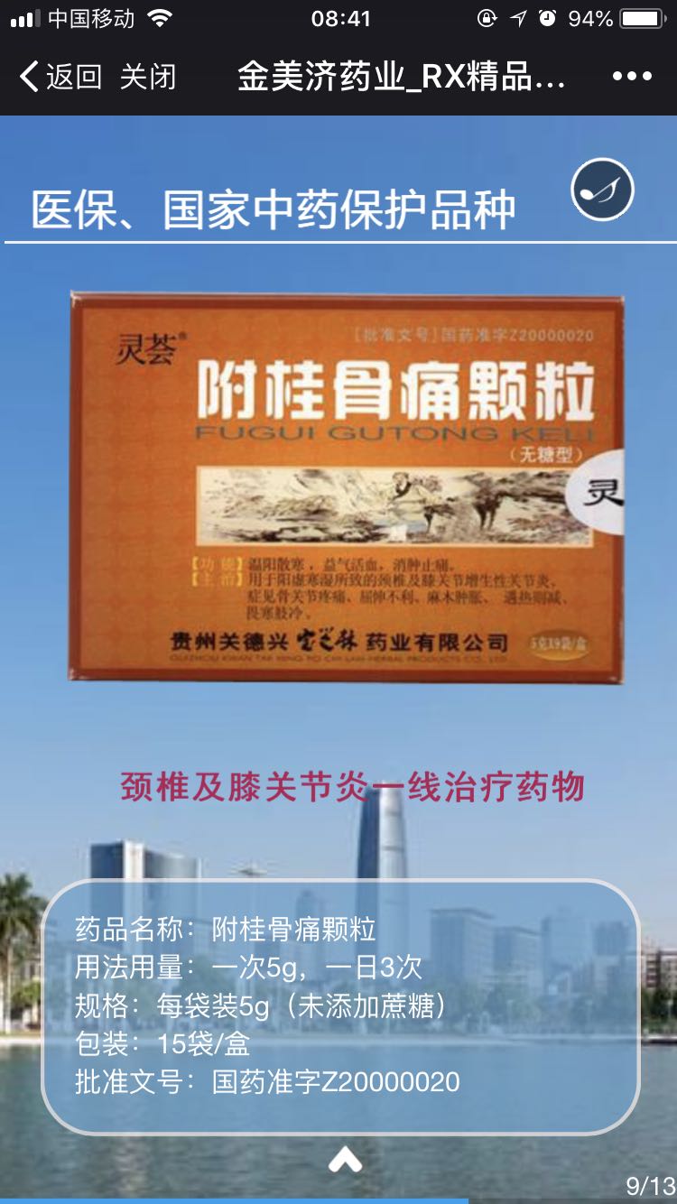 | 产品卖点 | 阳虚寒湿型颈椎及膝关节增生关节炎。 中医扶阳派经典处方,无糖配方。 国家医保、 |