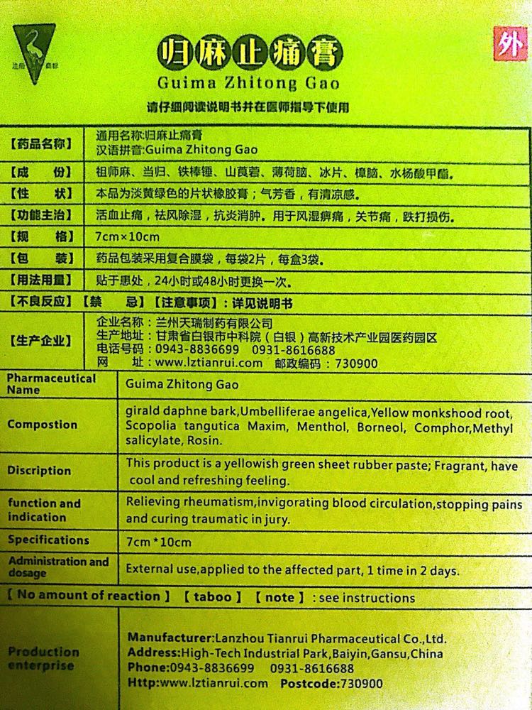 | 产品名称 | 归麻止痛膏 |