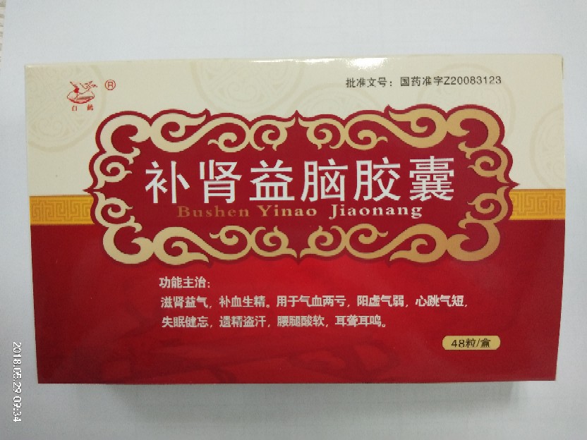 | 补充说明 | 【全国医保品种】??补肾益脑胶囊: 功能主治:滋肾益气,补血生精。用于气血两亏,阳虚气弱,心跳气短,失眠健忘,遗精盗汗,腰腿酸软,耳聋耳鸣。 |