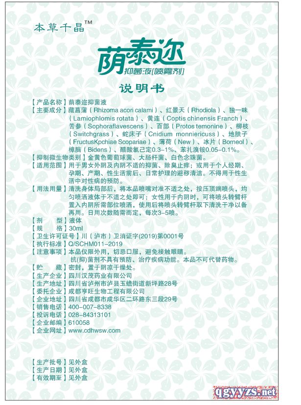 | 产品名称 | 荫泰迩妇科男科抑菌液喷雾剂 |