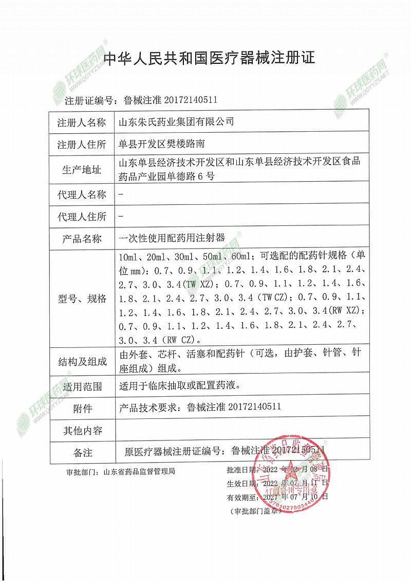 | 产品用途 | 适用于临床抽取或配置药液。 |