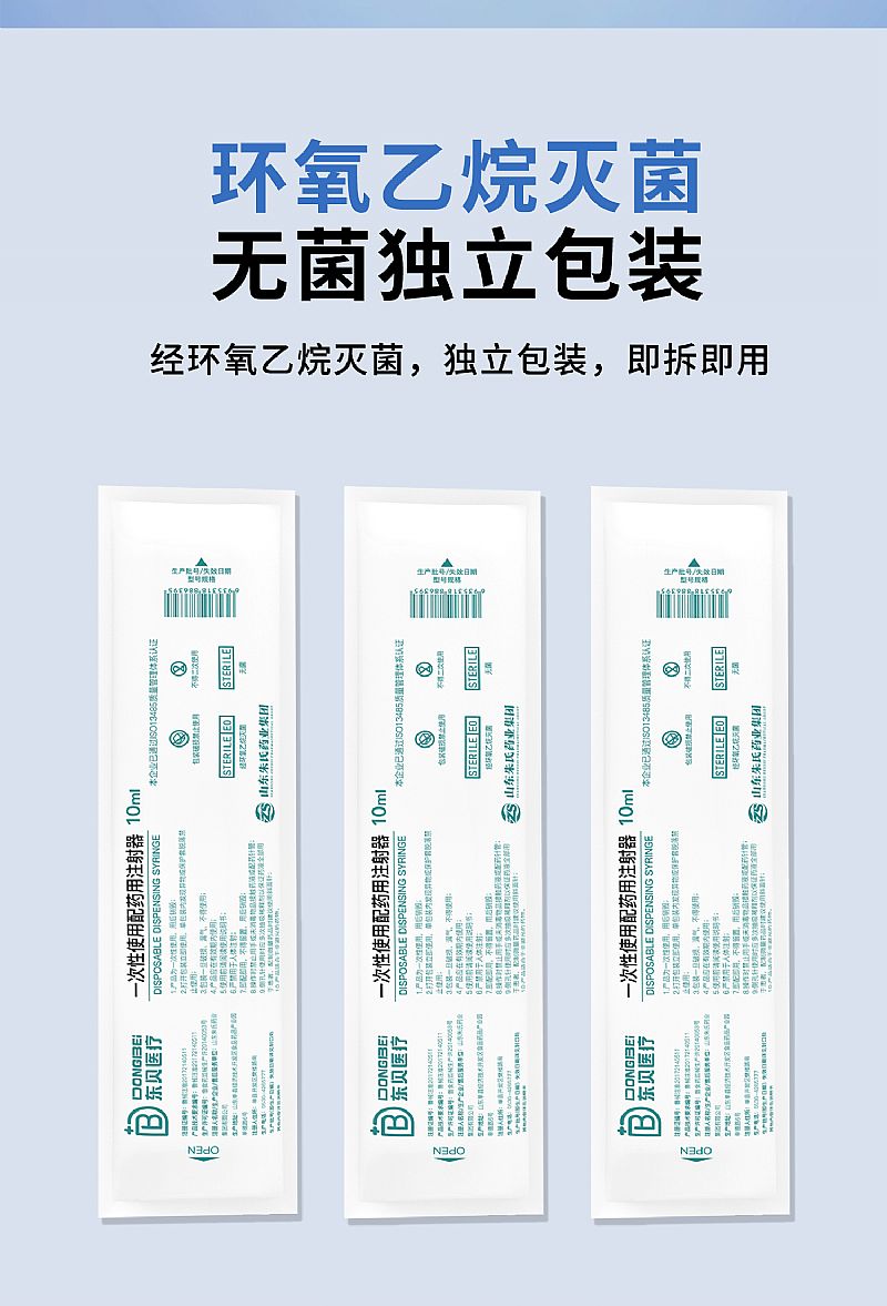东贝医疗一次性使用配药用注射器10毫升中标挂网直