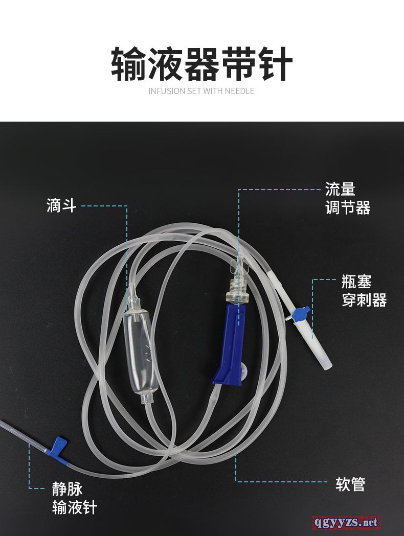 | 主要成分 | 本品由瓶塞穿刺针保护套、瓶塞穿刺针、带空气过滤器和塞子的进气口(塞子可不带)、液体通道、进气器件(可无)、滴管、滴斗、软管、流量调节器、注射件(可无)、精密药液过滤器、管路、夹子(可无)、外圆锥接头、外圆锥接头保护套、一次性使用静脉输液针(可无)。 |