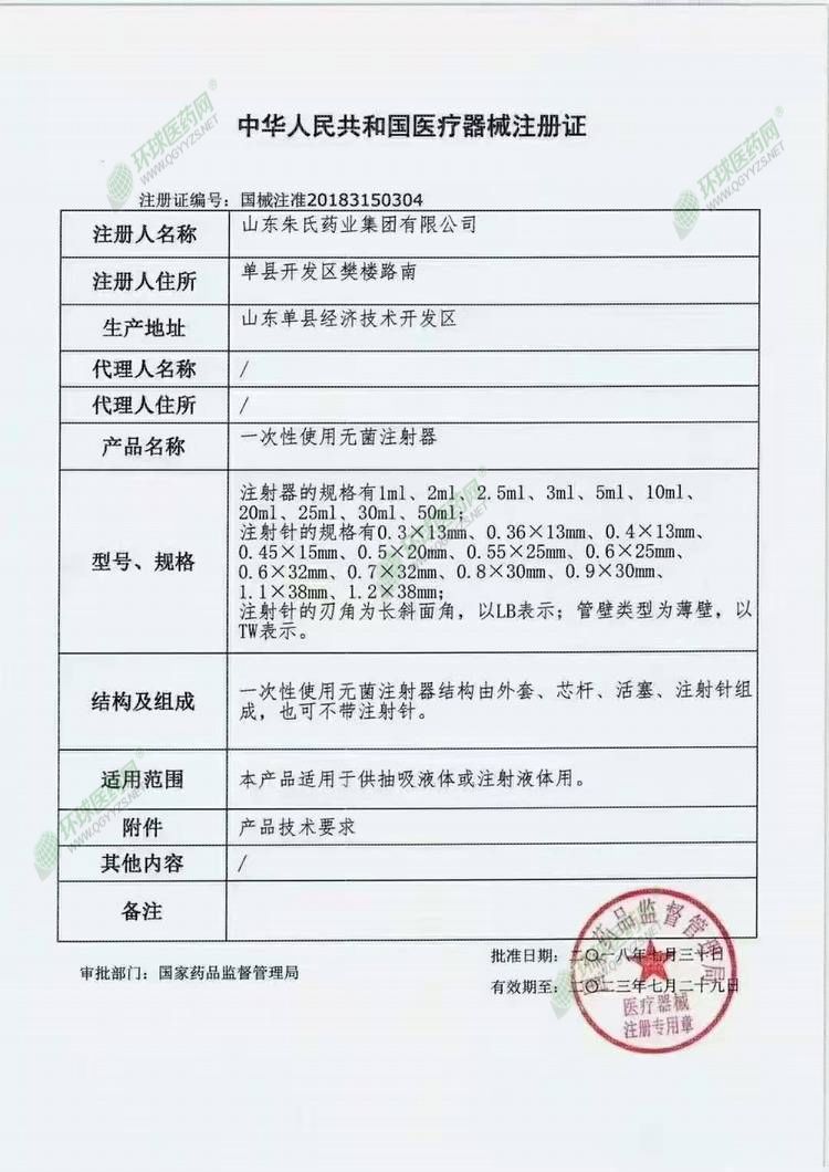 | 产品名称 | 一次性使用无菌注射器 |