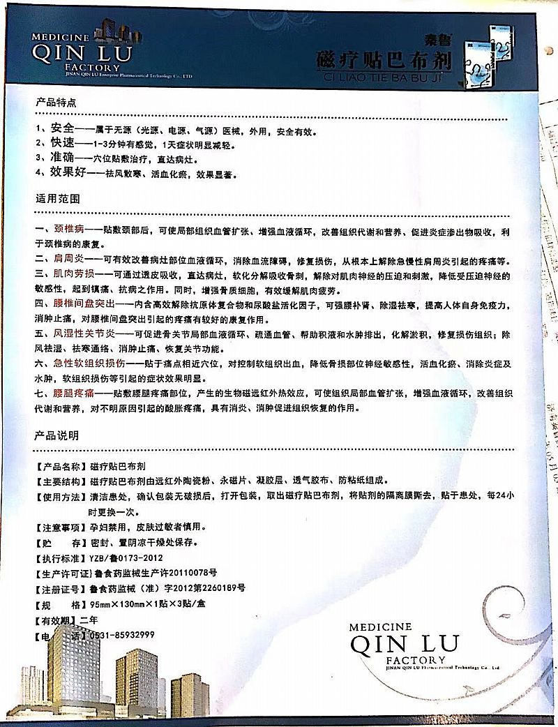 | 产品名称 | 磁疗贴巴布剂 |
