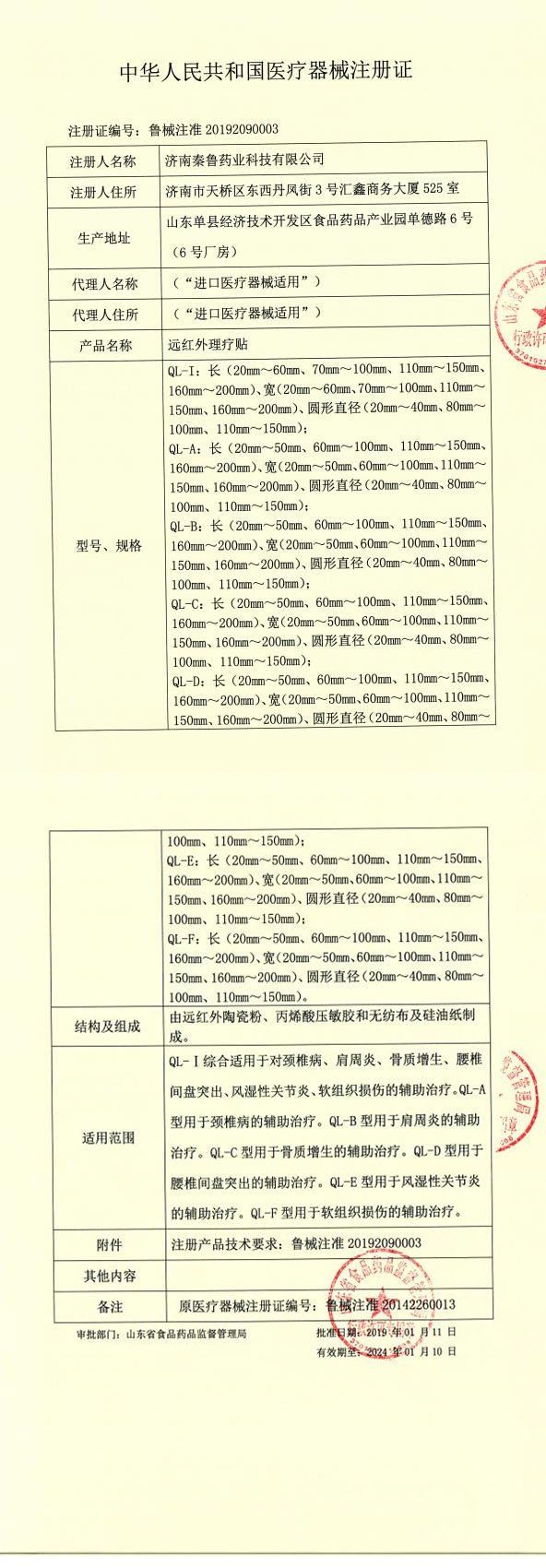 | 产品用途 | 用于QL-A颈椎病、QL-B肩周炎、QL-C骨质增生、QL-D腰椎间盘突出、QL-E风湿性关节炎、QL-F跌打损伤的辅助治疗 |