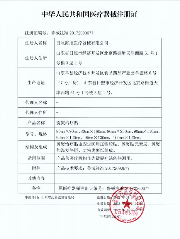 | 产品名称 | 烫熨治疗贴 |