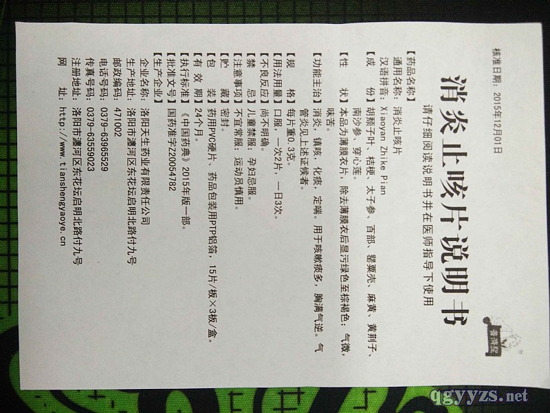| 通用名称 | 消炎止咳片 |