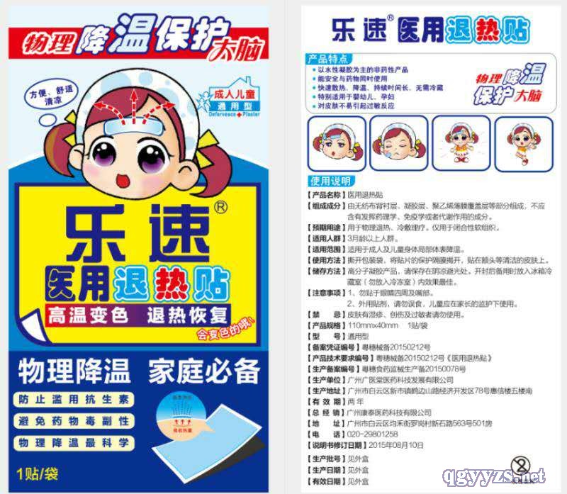 | 产品用途 | 乐速退热贴成人及儿童发热时用于身体局部体表降温。仅用于体表完整皮肤。通过水分气化,对人体表面进行物理散热。 |