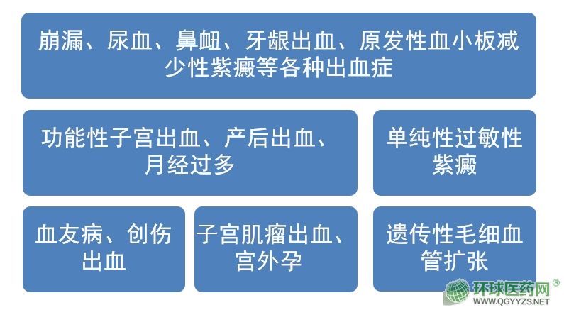 | 功能主治 | 本品凉血止血。适用于血热妄行的出血证候,用于功能性子宫出血、产后出血子宫肌瘤出血、单纯性紫癜、原发性血小板减少性紫癜系血热妄行者。 |
