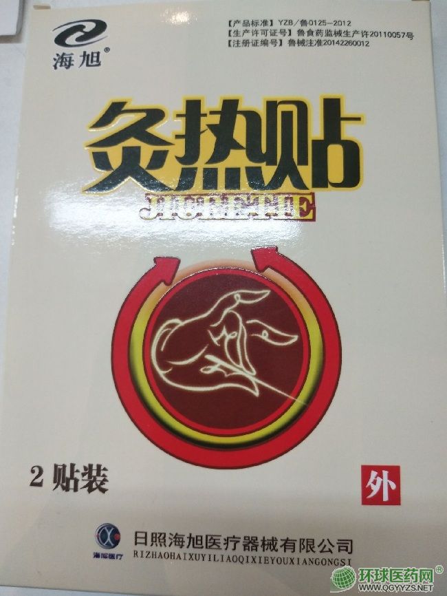 | 产品用途 | 【产品名称】灸热贴 【结构性能】该产品由内装物和外袋组成,外袋由敷膜无纺布和含有压敏胶的无纺布及硅油纸制成。 【适用范围】适用于肩周炎引起的肩部的疼痛、肿胀;腰椎间盘突出引起的腰部的疼痛、肿胀;颈型颈椎病;腰肌劳损;风湿性关节炎(非急性期)的辅助治疗。 【使用方法】清洁患处,取出贴剂揭开防粘层,将胶面贴于患处,轻轻按压即可,每24小时更换一次。 【禁忌症】高热、昏迷、急性化脓性炎症早期、出血倾向、开放性伤口、孕妇腰腹部禁用。 【贮存】密闭、置阴凉干燥处保存。 灸热贴的展示 灸热贴的展示 【执行标准】YZB/鲁0157-2011 【生产许可证】鲁食药监械生产许20110057号 【注册证号】鲁食药监械(准)字2011第2260242号 【规格】9cmx11cmx1贴x2袋 【生产单位】日照海旭医疗器械有限公司 【地址】日照市莒县城阳东工业园 |
