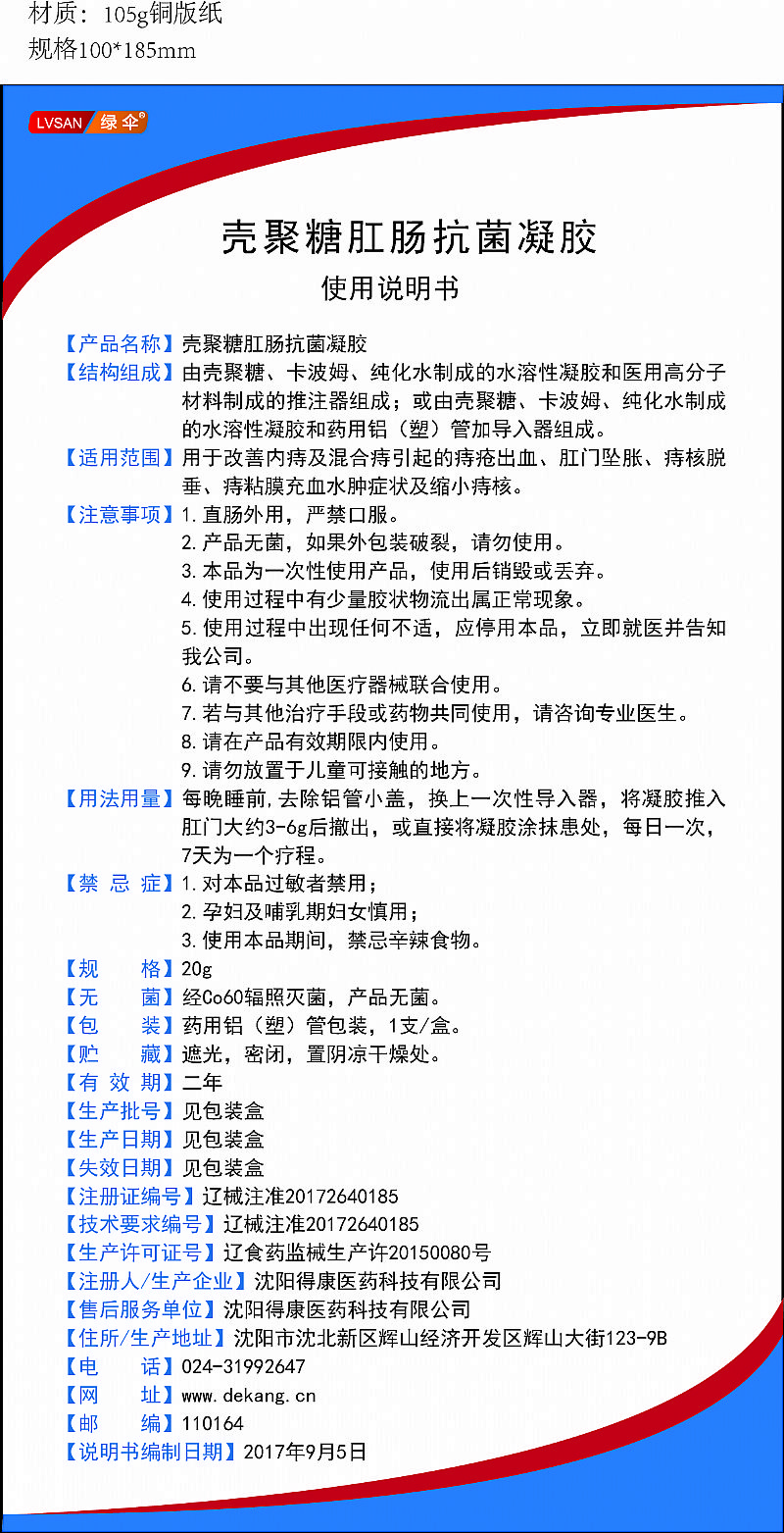 | 产品名称 | 壳聚糖肛肠抗菌凝胶 |