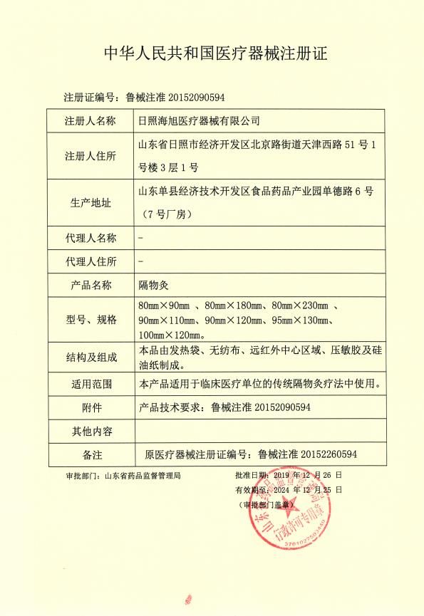 | 使用方法 | 【使用说明】确认包装无破损后,打开包装,取出隔物灸,将隔离膜撕去,按照传统隔物灸疗法贴于患处,至不再发热后更换。 |
