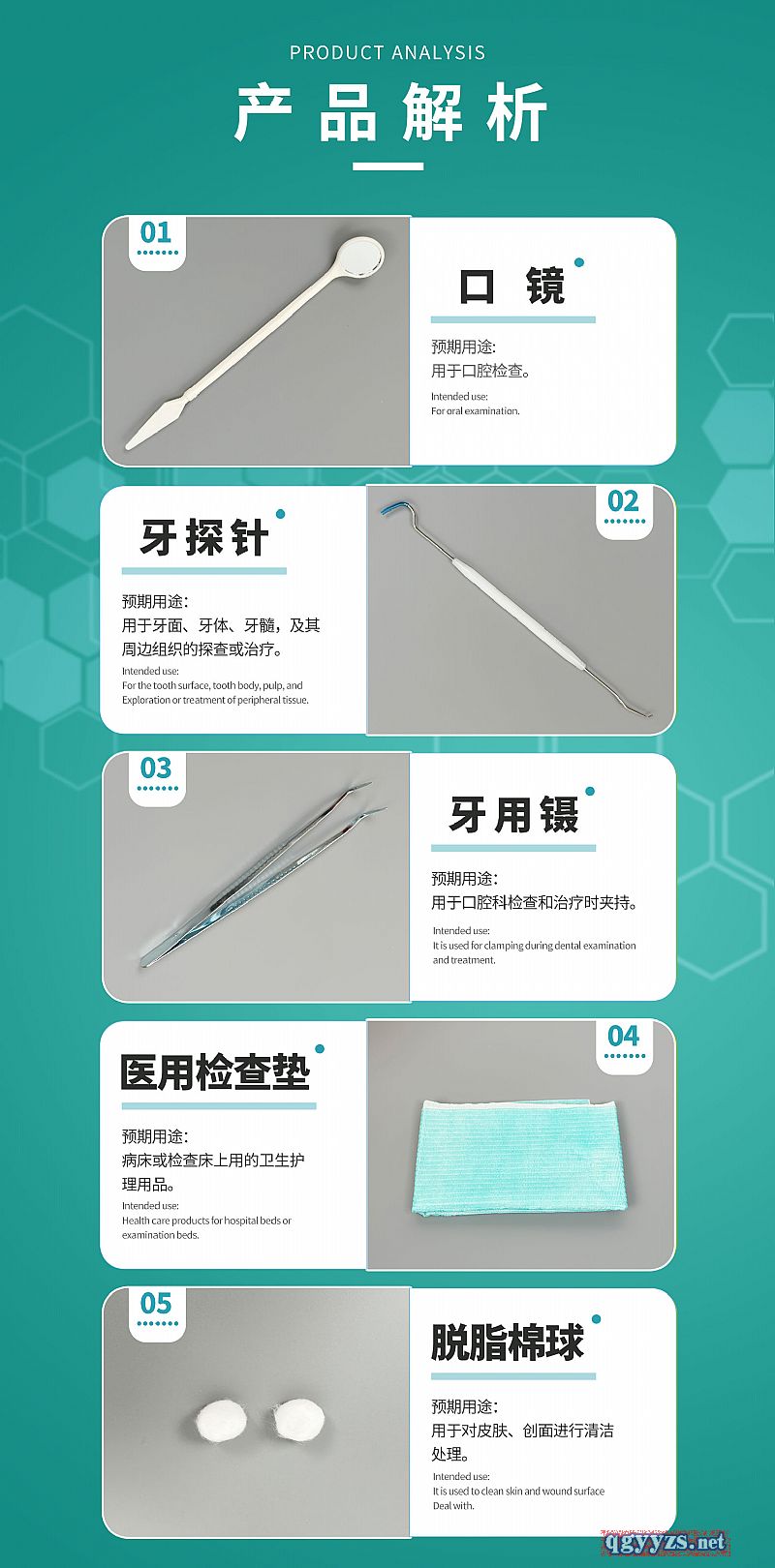 | 产品卖点 | 口腔器械盒内各器械的预期用途见附件一中各器械的预期用途。 |