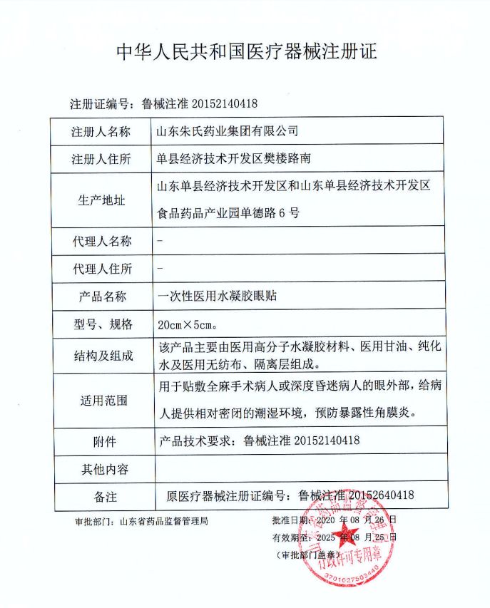 批准文号: 鲁械注准20152140418 【验证真伪】