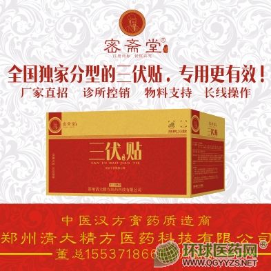 | 产品卖点 | 全国优质分型的三伏贴,专用更有效 一、产品优势:****纯中药,临床经验方,不含西药、激素抗生素等; 二、优质白芥子去毒处理工艺;超大膏体(外衬8*8cm,膏体4.5x4.5cm);进口胶基,纯中药看得见; 三、包装精美,自主设计,不妨不冒(欢迎同行模仿产品内在品质,鄙视抄袭外观包装);内装膏药品质及包装外观具有压 倒性优势;公司提供全套的物料支持; 四、固定层(胶布背托)采用德国进口的汉高油胶,自行涂制,不过敏、不脱落、透气性好; 五、直接贴敷,贴敷穴位及方法便于掌握,不需要现场调制; 六、限制抗生素、激素及化药; 七、纯中药,打造特色终端医疗门诊; 八、绿疗渠道**,不做药店及流通,一箱一号,严控串货; 九、公司提供全套产品物料,支持圆桌会、学术会; 郑州清大精方医药科技有限公司;姚总13733153881(同微信)/15939005725 |