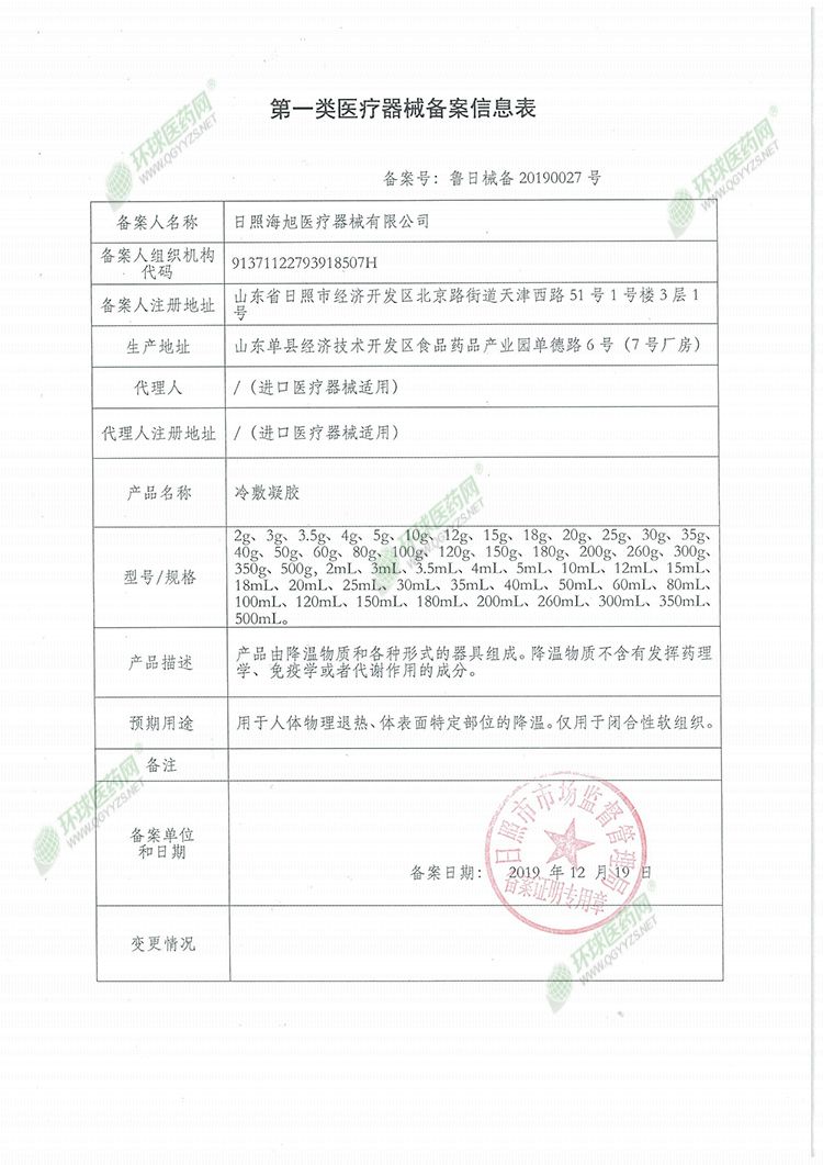 批准文号: 鲁日械备20190027号 【验证真伪】