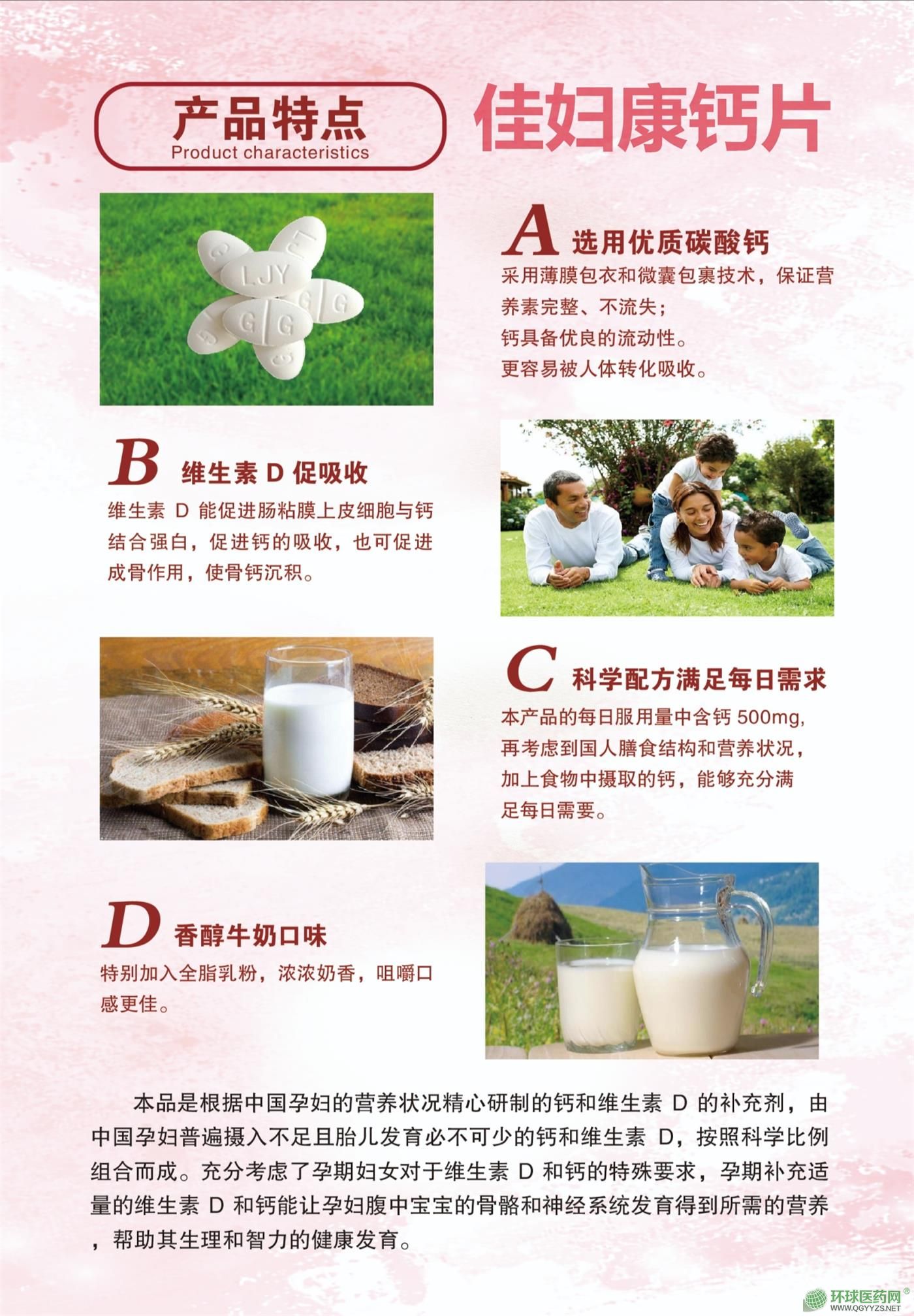 | 补充说明 | 每片含:钙 500mg、维生素D 20μ【产品特点】1、高性的维生素D3原料:有效增强人体对钙的吸收和利用率,确保维生素D3的天然本质活性,完全不同于一般钙类产品所配置的VD可能带来风险隐患的原料。2、科学配比,高吸收率:强化小肠对钙的充分吸收,大限度避免钙质的浪费和流失,约为普通钙类产品吸收率的2-3倍,具有突出的高含量、高性价比。【原料】碳酸钙、维生素D3粉【适宜人群】需要补充钙和维生素D的4-17人群、成人、孕妇、乳母 |