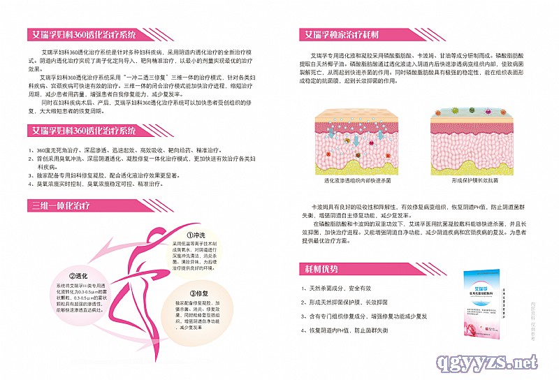 | 补充说明 | 艾瑞孚妇科离子透化治疗教你如何远离妇科炎症 1.保持良好的卫生习惯 不要用**药液清洗阴道,这样做反而会破坏阴道的环境,诱发阴道炎。 有些女性朋友担心白带弄脏内裤或懒得洗内裤,平日总是用卫生护垫,这种做法是不可取的。不是月经期,尽量不要用卫生护垫,应每天晚上用清水洗净外阴,更换内裤。 2.增强免疫力 坚持锻炼,增强体质;睡眠充足、饮食合理、营养均衡;多进食富含维生素的水果蔬菜;保持乐观良好的心态。 3.少穿紧身裤 少穿紧身裤,比如紧身牛仔裤,亦要避免穿着紧身尼龙内裤,应选择棉质内裤。 4.经期定时更换卫生巾 不要非得等它装满经血再换,有时下体感觉到痒可能只是因为经血、尿液和粪便刺激造成的。 如果自己的白带有异常,应该尽早去医院就诊。一旦已经确定为阴道炎了,那么就乖乖听医生的话,认真用药,发生性行为的时候一定要带**套。还有一些类型的阴道炎在月经过后很容易复发,更要按医嘱用药和复查。 艾瑞孚妇科离子透化治疗仪适用人群:适用于**妇科疾病(细菌、霉菌、真菌、滴虫等致病菌引起的阴道炎、宫颈炎、白带异常)、盆腔炎、外阴炎、老年性阴道炎以及产后术后修复。 艾瑞孚妇科离子透化治疗仪利用低温等离子技术制成高浓度臭氧,与水融合产生臭氧水,同时设备内置臭氧浓度感应探头,实时监控臭氧浓度。然后用臭氧水对阴道进行深度冲洗清洁,为后续阴道内透化治疗提供良好的治疗环境。 再以透化装置结合专用耗材进行透化治疗,对病变组织定向治疗。实现离子态导入,使治疗效果*大化,减少患者的治疗周期和用药量,对治疗妇科炎症、宫颈糜烂、术后产后恢复等疾病上具有更好的治疗效果。 艾瑞孚妇科离子透化治疗仪**三**体模式。首先采用阴道冲洗,其次使用透化治疗,第三采用修复治疗的循环治疗模式,可*大限度的提高治疗效果。快速有效的为患者提供*好的治疗,同时大大减少妇科疾病的复发率。 |