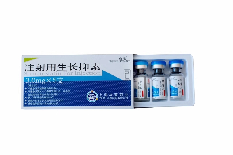 【功能主治】1.严重急性食道静脉曲张出血; 2.严重急性胃或十二指肠溃疡出血,或并发急性糜烂性胃炎或出血性胃炎; 3.胰腺外科术后并发症的预防和治疗; 4.胰、胆和肠瘘的辅助治疗; 5.糖尿病酮症酸中毒的辅助治疗。