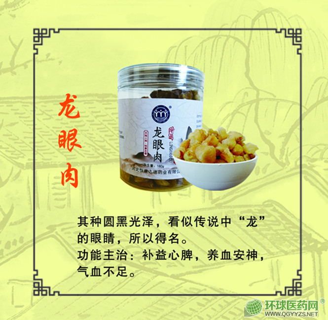 | 产品卖点 | 龙眼肉甘润味厚,能补心脾、益气血、润脏、健脑力、宁神志,并且该品补而不燥,滋而不腻,富含营养物质及多种维生素,具有促进造血,改善心脑血量和降血脂作用,为滋补心脾之佳品。凡老人体弱,病后体虚,或劳伤心脾,气血不足所致之失眠健忘,心悸怔忡,头晕眼花,少气倦怠等,可配伍党参(老年人配伍太子参)、丹参、黄芪、当归、酸枣仁、远志、茯苓等,以补益心脾、养血安神 |