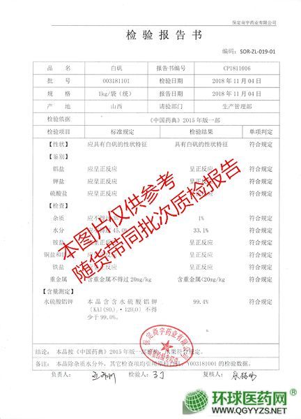 | 产品用途 | 外用解毒杀虫,燥湿止痒;内服止血止泻,祛除风痰。外治用于湿疹,疥癣,脱肛,痔疮,聤耳流脓;内服用于久泻不止,便血,崩漏,癫痫发狂。枯矾收湿敛疮,止血化腐。用于湿疹湿疮,脱肛,痔疮,聤耳流脓,阴痒带下,鼻衄齿衄,鼻瘜肉。 |