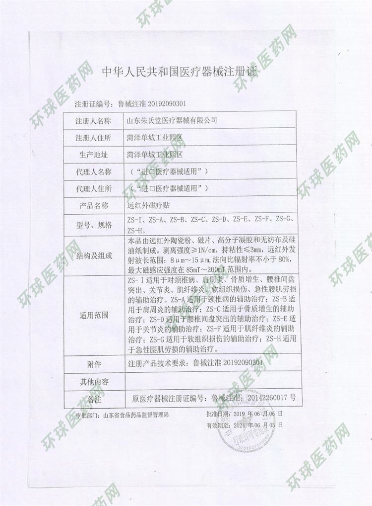 | 使用方法 | 确认包装无破损后,清洁患处,打开包装,取出远红外磁疗贴,将贴剂的隔离膜撕去,贴于患处,每2-3天更换一次。 |