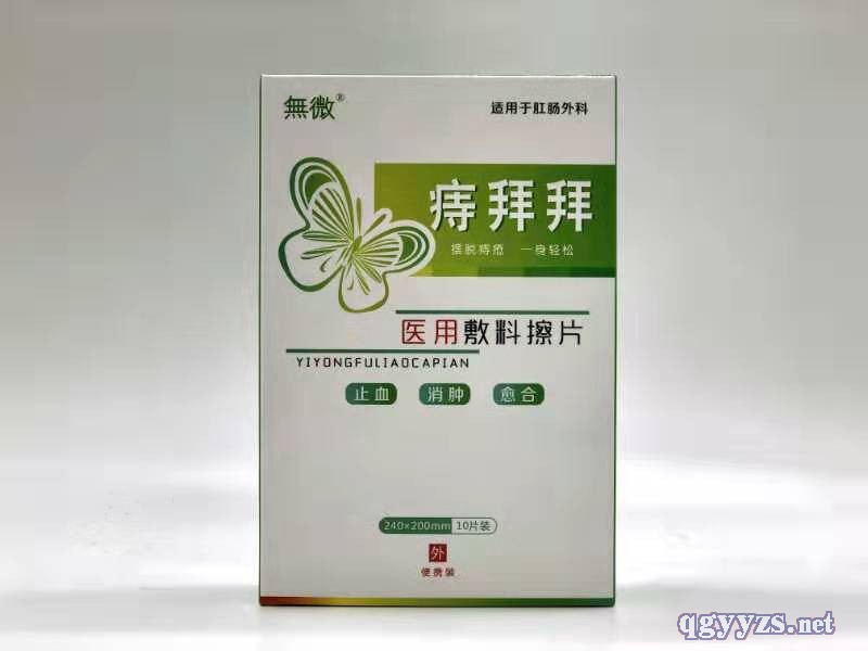 | 补充说明 | 医用敷料擦片三效合一 :清洁、消毒、愈合。 威士肛洁医用敷料擦片—*方便的创新产品 威士肛洁为湿敷擦拭型,是由接触创面的敷垫物、浸润液体和铝塑纸等包材组成,敷垫物由医用无纺布或棉条或泡棉或海绵或湿强纸等组成,浸润液体为含复合季铵盐类德国食品级的高渗生理盐溶液。是便于患者能随时随地方便使用的创新产品。威士肛洁产品专利号为:ZL201220321378.8 |