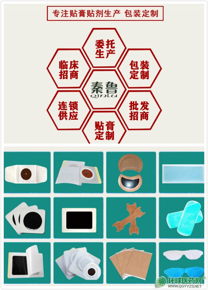 | 其它说明 | 秦鲁药业专注各类贴膏贴剂贴牌代工生产15年,文号齐全,种类丰富,免费设计免费研发免费打样支持一站式服务 |