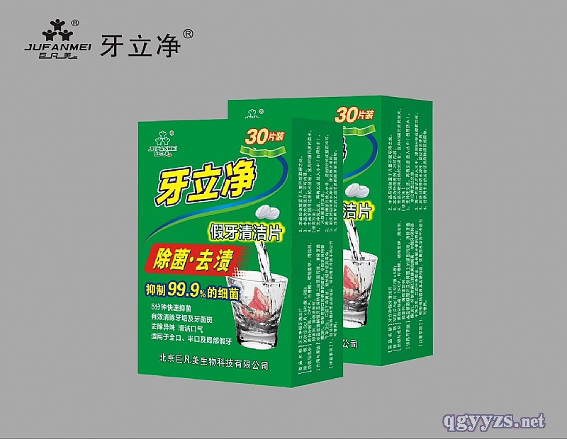 | 补充说明 | **步:将一片牙立净假牙清洁片放入浸泡盒或水杯中,加入温热水(40度左右)确保水面可以完全覆盖假牙!第二步:在清洁片起泡时将假牙放入,浸泡五分钟或浸泡整夜即可。第三步:早晨起来,建议先以软毛牙刷蘸清洁溶液洗假牙,并用清水冲洗后再佩戴! |