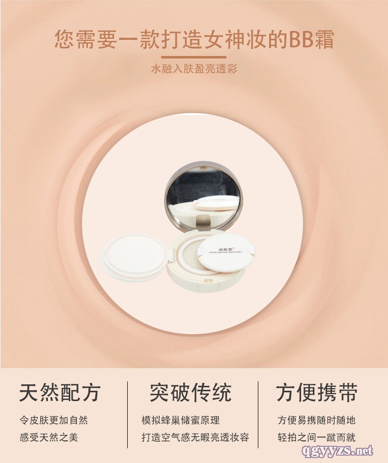 | 补充说明 | 支持OEM加工定制,简单轻松打造自然干净皮肤,模拟蜂窝原理研制而成,将BB霜紧锁于具有万千细孔的海绵气垫粉芯内,质地润泽柔滑。完美遮瑕不脱妆,能够遮盖细纹,斑点,痘印,疤痕等。粉质细腻易上妆,轻松打造水润光透立体妆容。针对不同肤色需求 |