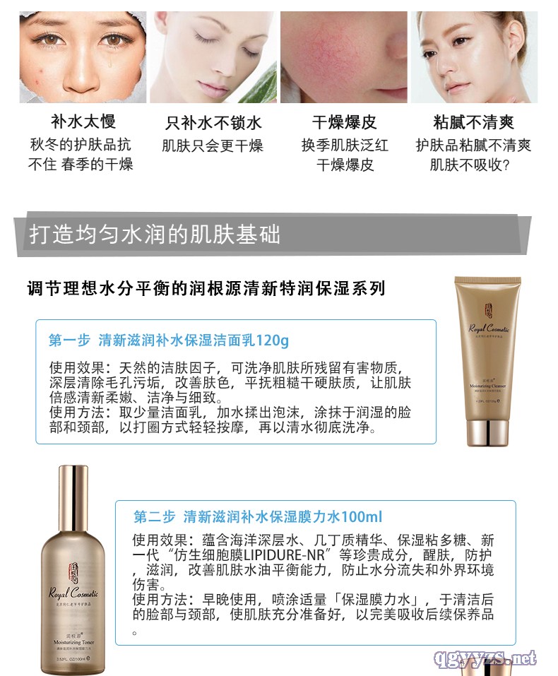 | 产品卖点 | 套盒采用洁面乳、水、乳液、霜的完美保湿护肤搭配,洗面奶采用天然的洁肤因子,可洗净肌肤所残留有害物质,深层清除毛孔污垢;膜力水蕴含海洋深层水精华新一代“仿生细胞膜LIPIDURE-NR”等珍贵成分,醒肤防护滋润,改善肌肤水油平衡能力,持久保湿,保护角质层,改善暗沉和修护干燥肌,配以滋润乳液,饱满Q弹,明亮肤色,带来真正的深养滋润与柔嫩亮泽。膜力霜中蕴含浓缩滋养成分,迅速渗透而不粘腻,有效保持水分并紧实肌肤,减少细纹,肌肤柔软幼滑超乎想象 |