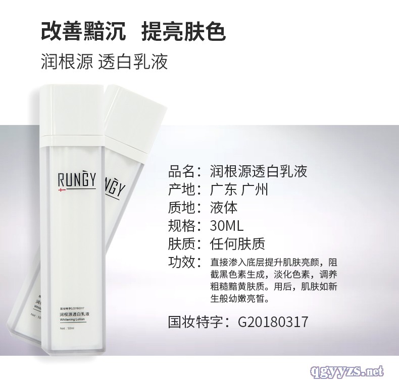 | 产品名称 | 国妆特字号**美白润根源透白乳液 |