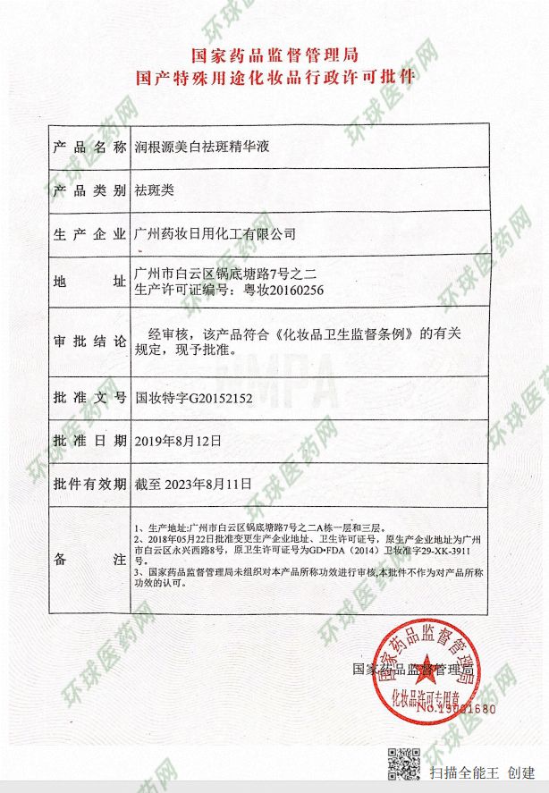| 产品名称 | 润根源美白祛斑精华液 |