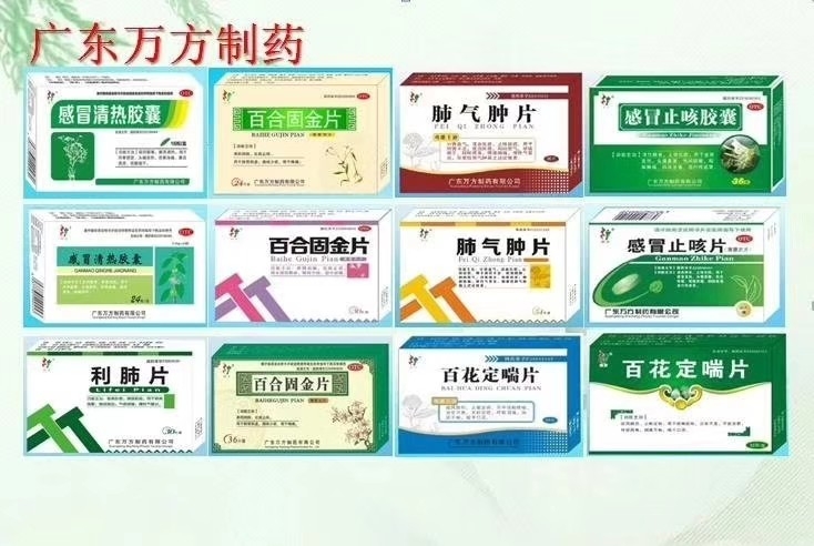 | 补充说明 | 广东万方系列产品,百合固金片,百花定喘片,肺气肿片,感冒清热胶囊,海珠喘息片,感冒清热胶囊,感冒止咳片,利肺片 |
