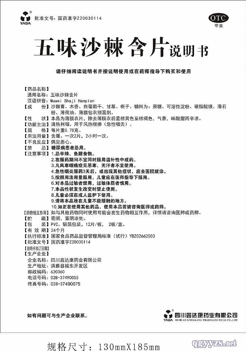 | 销售包装 | PVC、铝箔包装,12片/板,2板/盒(铁盒纸盒均有) |
