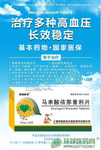 低血压:在使用依那普利的初始阶段会引起明显的血压下降。对于盐、水流失(如透析、呕吐/腹泻、利尿治疗)的患者大多数会出现此现象。同时,具有心衰的患者(有或无肾衰)绝大部分会出现低血压。对于这些患者应用依那普利必须进行监测。缺血性心脏病或阻塞性脑血管疾病患者在使用依那普利时,必须严密监护,因为可能会发生由于显著的血压下降而引起的心肌梗死或休克。对于这些患者须从最低剂量开始,而且在监测肾功能和血钾水平的基础上增加剂量。如有可能,服用的利尿剂应暂时停用。肾性高血压/肾动脉狭窄:对于肾性高血压和已有的双侧动脉狭窄和单肾单侧动脉狭窄的患者服用依那普利存在血压显著下降和肾损害的危险。即使对于单侧肾动脉狭窄的患者可见表现为血清肌酸酐水平的轻微改变的肾功能损害。因此,这些患者须从小剂量开始服用,剂量调整时需住院。正在使用利尿剂的患者,须暂时停止使用利尿剂,并在治疗的最初几周监测肾功能。肾衰:敏感患者可由于药物阻断肾素一血管紧张素醛固酮系统而引起肾功改变。因此,建议使用小剂量马来酸依那普利。对于严重肾衰(肌酐清除率低于30ml/min)和透析患者,必须在仔细考虑风险以后才可使用。同时在使用中监测肾功。有报道显示,严重肾病和心衰患者持续用ACE抑制剂治疗会引起肾衰。在与利尿剂同时应用时,一些患者在没有症状情况下出现血中尿素和肌酸酐水平变化。如出现这种情况,建议减少ACE抑制剂的用量和/或停止使用利尿剂。透析患者:在用马来酸依那普利治疗时,如同时使用聚丙烯腈或甲基烯丙基硫化钠高通量滤膜透析,可能发生过敏性反应(超敏反应,甚至休克)。过敏的第一症状为颜面肿、潮红、低血压和呼吸困难。这些症状通常在透析开始时的几分钟内出现。因此,必须避免这种联合应用,或者用其他的透析膜,或者换用其他药物治疗高血压或心衰。高血钾:服用马来酸依那普利会引起高血钾症,特别是对于肾衰或/和心衰的患者。因此,不能同时服用保钾利尿剂和钾补充剂,以免导致血钾水平显著增加。如果必须服用这些药物,必须严密监视血钾水平。原发醛固酮过多:原发醛固酮过多的患者一般不会对抗高血压药物有反应。因此不建议应用依那普利。蛋白尿:在已有肾功能损害和服用高剂量ACEI患者罕见蛋白尿。如果已出现蛋白尿(每日多于1克),必须仔细考虑风险以后才可使用。同时在使用中常规检查临床和实验室参数。LDL-脂蛋白血浆分离置换法/脱敏治疗:在使用硫酸右旋糖酐进行LDL(低密度脂蛋白)分离清除或蜜蜂、马蜂叮蜇须脱敏治疗时同时使用马来酸依那普利有发生致命性过敏反应的危险(如血压下降、呼吸困难、呕吐和过敏性皮肤反应)。如必须使用硫酸右旋糖酐或蜜蜂、马蜂叮蜇须脱敏治疗时,必须暂时用其他药物替代ACEI治疗高血压或心衰。血管神经性水肿:罕见使用ACEI(包括依那普利)引起的脸部、四肢、唇部、舌头、声带和/或喉部的血管神经性水肿。它们可以在治疗的任何期间发生。出现这种情况,应立即停止服用依那普利,并且监测患者。对于在脸部、唇部发生的水肿,不须治疗即可康复,尽管抗组胺治疗可以有效减少症状。具有血管水肿史的患者使用ACEI,容易出现血管神经性水肿。黑人患者使用ACEI,更容易患此病。累及舌部、声带以及喉部的血管神经性水肿可以危及生命。出现这种情况必须立即皮下注射O.3-0.5mg肾上腺素或者在心电图和血压监测下缓慢静脉注射0.1mg肾上腺素(遵照稀释说明)。须住院治疗。至少要观察12-24小时,直至症状减轻方可出院。中性粒细胞减少症/粒细胞缺乏症:高血压患者使用ACEI治疗罕见中性粒细胞减少症/粒细胞缺乏症。肾功不良,特别是血管疾病和组织系统疾病(如红斑狼疮、硬皮病)或同时使用免疫抑制剂的患者容易出现中性粒细胞减少症/粒细胞缺乏症。这些患者应常规检查血象。中性粒细胞减少症/粒细胞缺乏症在停药后会恢复。