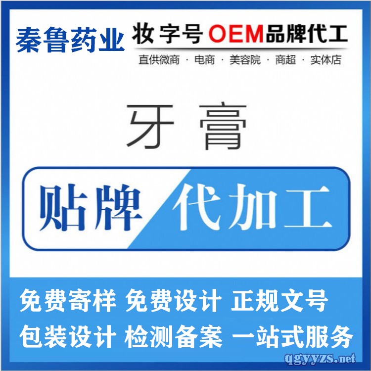 | 补充说明 | 牙膏定制/代理业务承接范围: 1、按客户品牌定制,但需有商标合法注册及授权 2、定制包装材质:根据客户要求采用多种材质定制包装。 3、定制香型:花香、草本、水果香、中药成分、清新薄荷香等多种香型可供选择。 4、定制膏体:白色膏体、蓝色、黑色、混合色、透明膏体(**颜色)等。 5、定制管型、盖型:管型可加工定制、盖型有普通盖、博士盖、翻盖、拧盖等多种样式。 6、定制外包装规格,普通规格、特殊规格等。秦鲁药业一般规格有30g、120g、180g、也可根据客户的要求定制,成件发货。 7、定制功能,如美白牙膏、清火牙膏、防蛀牙膏、营养性牙膏、含氟牙膏、功效性牙膏等。 8、牙膏价位:秦鲁牙膏档次分为高中低档次,可满足不同人群要求等; |